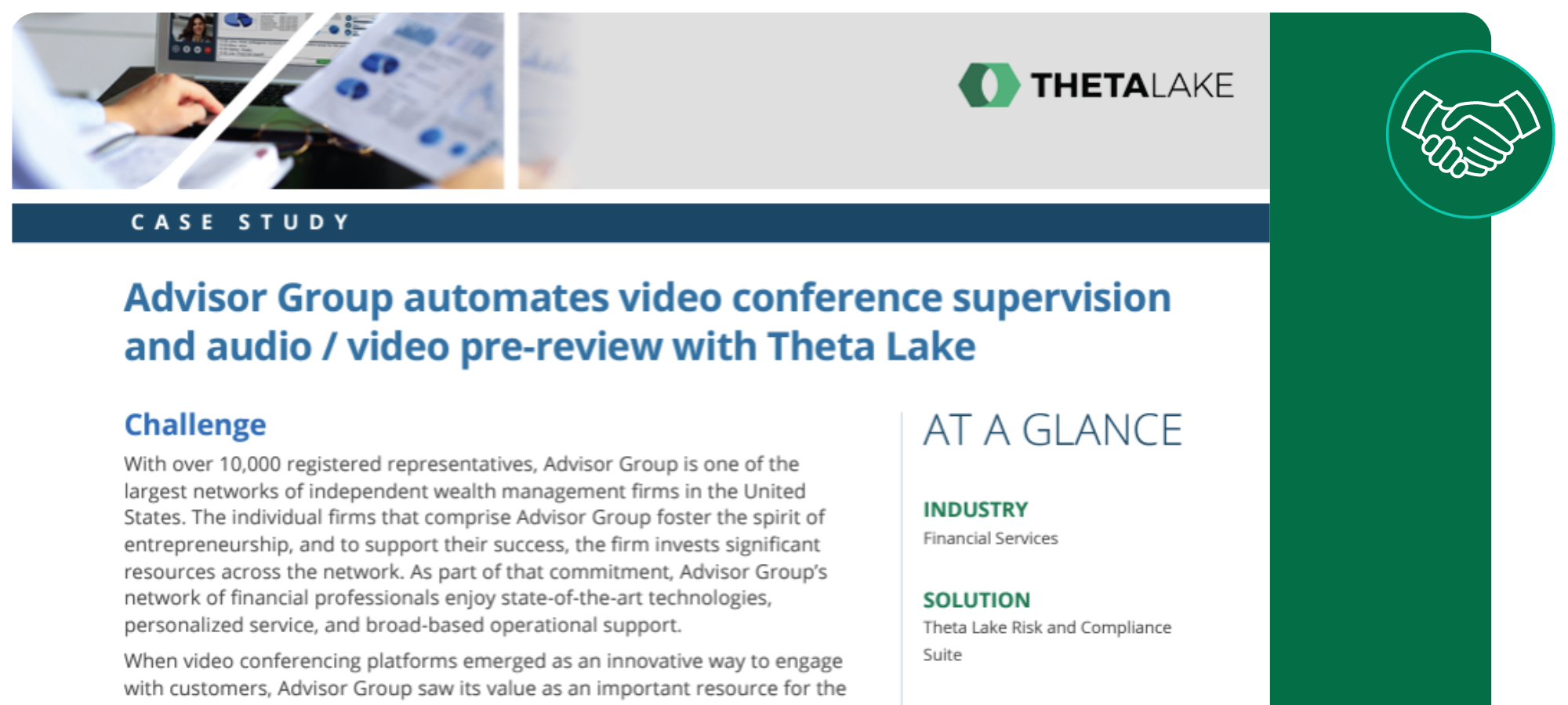 Theta Lake unlocks the full power of Zoom with the most comprehensive and purpose-built compliance, supervision, and security solution for Zoom applications, whether content is shown, shared, spoken or written. This evolving partnership has delivered significant value to leading organizations, including five of the top ten North American Banks, and resulted in Zoom’s investment in Theta Lake in 2022.